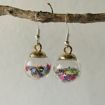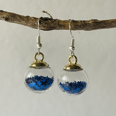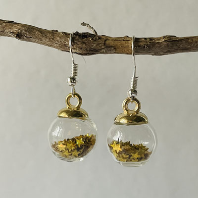 Hübscher Ohrschmuck Weihnachtskugeln mit Sternenkonfetti.